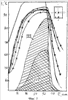 Для установления неравномерности тепловой обработки компотов при стерилизации по действующим режимам в автоклаве была исследована прогреваемость продукта в банке 13 в четырех точках (фиг.1). На фиг.1 показаны кривые изменения температуры в различных точках банки и фактической летальности центрального и периферического слоев «компота из персиков целыми плодами».