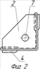 Опора содержит металлическую стойку 1 V-образного профиля («уголок») и пятку 2 в виде пластины, зафиксированные между собой в зоне соединения 3 с помощью пуклевок 4. Стенки 5 и 6 стойки 1, в частном случае выполнения опоры, расположены под прямым углом. Пятка 2 имеет приблизительно треугольную форму и выполнена с отверстием 7 для ввинчивания регулируемой ножки. С каждой стороны стойка имеет отбортовку вовнутрь по всей ее высоте (см. фиг.2), при этом полученные фальцы обжаты. Отогнутые края с двух сторон пятки “защемлены” в фальце стойки, таким образом в зоне соединения конструкция имеет три слоя, зафиксированные между собой пуклевкой 4 (см. фиг.3).