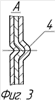 На фиг.1 показана опора – вид сбоку, на фиг.2 – вид сверху, на фиг.3 – приведен фрагмент соединения пятки со стенкой стойки с фиксацией за счет общей пуклевки.