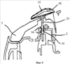 В альтернативном варианте изобретения ползунок расположен на участке поверхности элемента управления, который, начинаясь от оси поворота, проходит в направлении выключателя, а положение и форма рабочей поверхности ползунка выбраны таким образом, что сила, приложенная к рабочей поверхности, воздействует на элемент управления, проходя через его ось поворота или против направления включения (фиг.2-4). Это предлагаемое изобретением решение основано на том соображении, что определяющим является не то, в каком положении располагается ползунок или, точнее, путь перемещения ползунка относительно элемента управления, а, главным образом, положение и форма рабочей поверхности ползунка определяют, в каком направлении передаются усилия через ползунок на элемент управления. Согласно этому предпочтительному варианту изобретения предлагается придать ползунку, а точнее, его рабочей поверхности такую форму, при которой прилагаемые через рабочую поверхность усилия проходили бы предпочтительно через ось поворота так, чтобы приложенные усилия не могли вызвать поворот элемента управления в направлении его включения. Особенно предпочтительно, если форма ползунка, а точнее, его рабочей поверхности, будет выбрана так, чтобы приложенное усилие действовало на выключатель в направлении, противоположном его направлению включения. Это особенно эффективно препятствует повороту элемента управления в направлении включения при воздействии на ползунок.