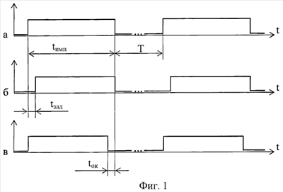 При раннем окончании регулируемого по длительности импульса относительно времени предъявления эталонного импульса на время t ок.пор испытуемый субъективно ощущает, что световые импульсы оканчиваются одновременно, при задержке на время t>tок.пор – не одновременно (фиг.3в, г).