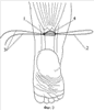 Сущность предлагаемого изобретения поясняется чертежами, где на фиг.1 показано формирование сдвоенной петли с одной стороны, петли и свободных концов нити с другой стороны ахиллова сухожилия; на фиг.2 – образование подкожной сухожильной петли по задней поверхности ахиллова сухожилия; на фиг.3 – окончательный вид восстановленного ахиллова сухожилия.