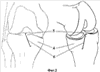 Из передне-латерального и передне-медиального стандартных порталов производят артроскопию коленного сустава. Репозицию перелома межмыщелкового тибиального возвышения осуществляют артроскопическим щупом. Из дополнительного разреза на медиальном мыщелке большеберцовой кости 4 через остеохондральный отломок межмыщелкового возвышения 5 проводят насквозь спицу 6. Через медиальный артроскопический портал вводят в сустав рабочий конец инструмента для сгибания спицы. Прорезью на рабочем конце инструмента захватывают выступающий конец спицы и формируют крючок вращательным движением рукоятки инструмента. Спицу подтягивают за дистальный конец до окончательной репозиции перелома с погружением сформированного крючка в хрящевую ткань межмыщелкового возвышения. Дистальный конец спицы скусывают, оставляя ее короткий участок, который сгибают иглодержателем или инструментом непосредственно у костной ткани.