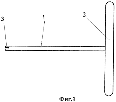 На фиг.1 показан внешний вид инструмента, где 1 – стержень, 2 – рукоятка, 3 – прорезь на рабочем конце стержня.