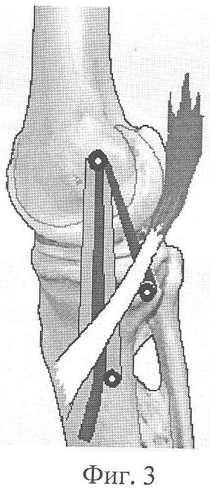 Технический результат – ликвидация сопутствующей хронической заднемедиальной ротаторной нестабильности с повреждением коллатеральной большеберцовой связки и заднемедиального отдела капсулы коленного сустава (косая бедренно-большеберцовая связка).