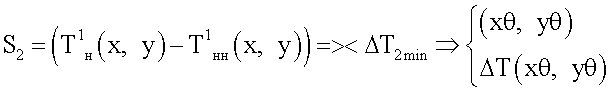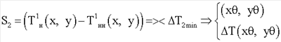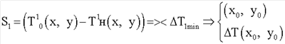 T1min, T2min – минимальное допустимое изменение температуры на локальном участке; (х0, y0) – плоские координаты участка стопы с локальным изменением температуры после первого нагружения;