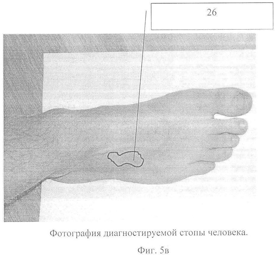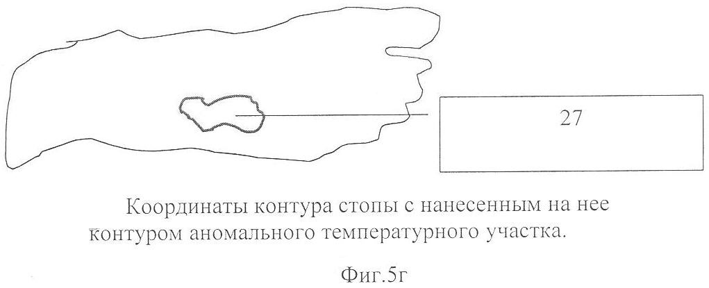 На фиг.5г приведены координаты контура стопы с нанесенным на нее контуром аномального температурного участка.