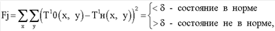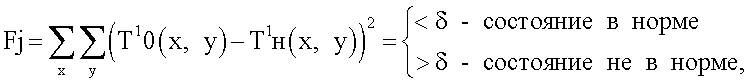 Т(х0, y0) – локальное изменение температуры после первого нагружения на участке (х0, y0); (х , y ) – координаты участка стопы с локальным изменением температуры после второго нагружения,