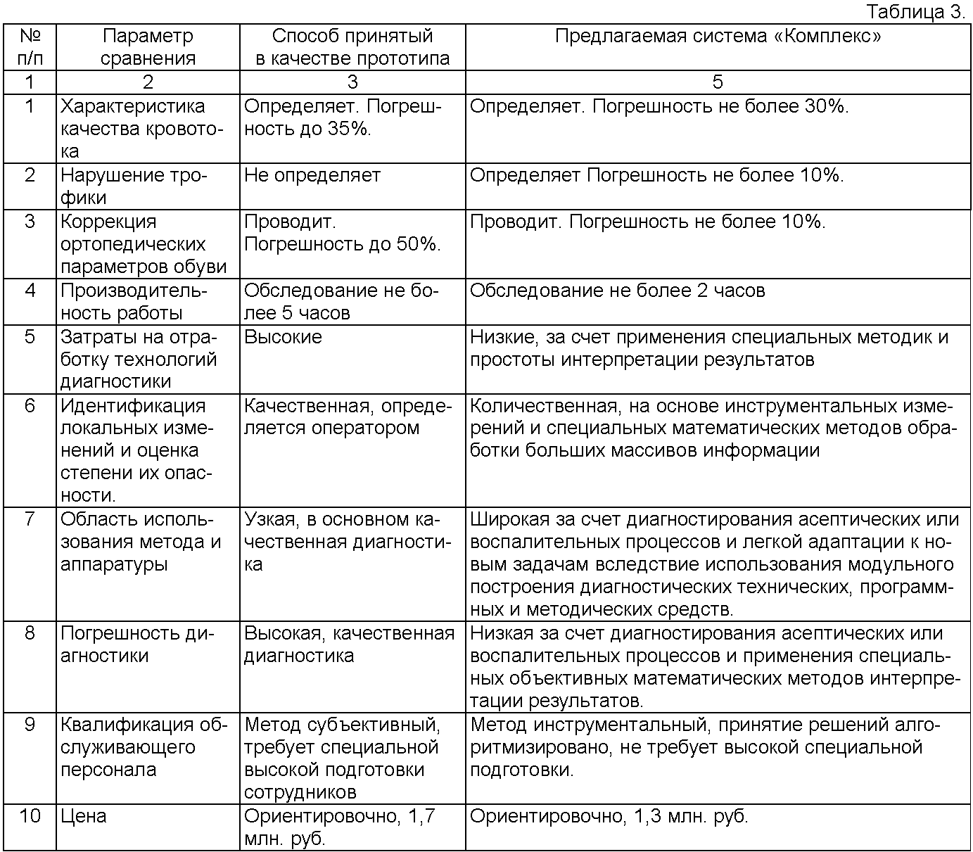 – Совмещение в едином программно-аппаратном измерительном комплексе различных по физической природе функций: взаимодополняющее объединение методов ортопедической коррекции нижних конечностей с современной тепловизионной диагностикой нарушений патологии нижних конечностей для повышения комфортности жизни больных и инвалидов, повышения эффективности лечения, профилактики инвалидности путем комплексной диагностики патологий нижних конечностей, автоматизированной оптимизации параметров ортопедической обуви и создания условий передачи параметрической информации непосредственному изготовителю обуви.