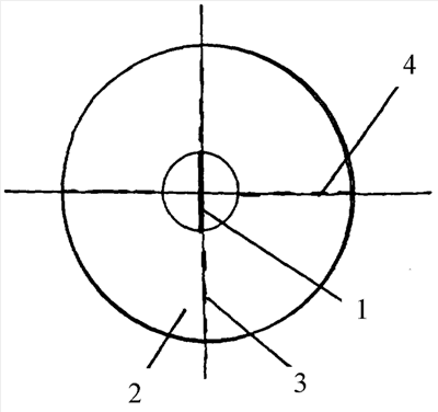 Микроинвазивный способ формирования опорно-двигательной культи при эвисцероэнуклеации выполняется следующим образом. Первоначально производят вертикальный разрез 1 центра роговицы 2 длиной 3-6 мм. Далее через этот разрез эвакуируют содержимое склеральной капсулы. Затем выполняют изнутри склеральной капсулы, по крайней мере, два меридиональных разреза 3, 4 задней поверхности склеры. Разрезы 3, 4 симметричны относительно диска зрительного нерва (на чертеже показаны пунктирными линиями) и производятся от экватора до диска зрительного нерва, при этом разрезы взаимоперпендикулярны друг другу. После чего перерезают зрительный нерв (не показано) в 5 мм от заднего полюса склеральной капсулы. Затем через ранее сделанный разрез 1 центра роговицы 2 производят имплантацию эндопротеза. Операцию заканчивают наложением швов на роговицу.