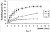 Высвобождение мономера белка из различных продуктов через ацетилцеллюлозную мембрану в чистую воду отслеживают в диффузионной ячейке в течение нескольких часов. Ксерогель с отпечатком (опыт А по примеру 7) и ксерогель с включенным белком (опыт В) помещают в диффузионную ячейку. Их влагосодержание восстановлено чистой водой в таком количестве, которое присутствовало в гидрогеле перед лиофильной сушкой. В опыте Г раствор белка в концентрации, которую рассчитывают, исходя из предположения, что все нанесенные капли белка растворены не во всем объеме ксерогеля, а в тонком слое толщиной 0,1 мм. Кинетики высвобождения из различных продуктов измеряют (фигура 5).