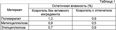 (6) которая образует гидрогель после регидратации и обеспечивает подходящие кинетики высвобождения и в то же время высокую концентрацию активного ингредиента со стороны высвобождения.