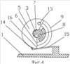 на фиг.4 показано взаимное положение упругой пластины и изогнутого конца пружинящей проволоки в момент наибольшего приближения к друг другу.