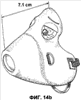На фиг.14A-D изображены маски различных конструкций с указанием глубины вхождения штуцера в корпус маски, измеряемой расстоянием от небулайзера до поверхности лица.