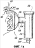 Недостатки, связанные с использованием известных в настоящее время конструкций масок, становятся очевидны из фиг.1, 1а и 2. На фиг.1 показана типичная лицевая маска 100 (изготавливаемая компанией Laerdal Medical Corporation, расположенной в Wappingers Falls, NY) на перспективном виде спереди. Необходимо заметить, что, хотя на фигурах 1 и 1а в качестве модели изображен взрослый, маска 100 разработана для использования у детей младшего возраста и находит свое применение именно в педиатрии при введении препарата беспомощным и неконтактным пациентам. Маска 100 содержит корпус 102, имеющий внешнюю кромку 104, предусмотренную для контакта с лицом пациента. Корпус 102 образует полость лицевой маски, внутри которой носовые отверстия и рот сообщаются между собой. Обычно корпус 102 изготавливается из гибкого материала, скажем термопластика, например из поливинилхлорида. Корпус 102 содержит центральное отверстие 106, задаваемое отчасти кольцевым фланцевым элементом 108, выступающим за пределы наружной поверхности 109 корпуса 102. При эксплуатации маски элемент 108 соединяется с остальными компонентами системы введения препарата (на фигуре отсутствуют), что позволяет осуществлять доставку препарата. Введение лекарственного препарата пациенту осуществляется через центральное отверстие 106. В зависимости от типа используемого устройства подачи препарата – небулайзерной системы либо дозирующего ингалятора препарат подается через отверстие 106 в полость, образуемую корпусом 102 маски. В результате дыхательной деятельности при попытке вдоха аэрозольный препарат вдыхается пациентом и поступает в дыхательную систему пациента.