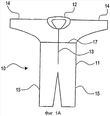 На фиг.1А изображена передняя проекция приведенного в качестве примера комбинезона согласно настоящему изобретению;