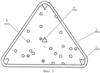 Поставленная изобретением техническая задача достигается тем, что в центре стола выполнено закрываемое отверстие-лунка, в створе луз выполнены грани-прорези треугольной формы для захвата шара, причем отверстие по центру выполнено треугольной формы эквидистантно треугольной форме стола, а треугольные прорези у луз стола вершиной направлены в сторону центрального треугольного отверстия.