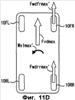 Как показано на Фиг.11D, максимальный момент вращения Mvlmax’ транспортного средства в направлении поворота влево в ситуации, когда сила торможения/движения транспортного средства является максимальной силой Fvdmax движения, достигается, если силы Fwxfl и Fwxrl торможения/движения переднего левого колеса 10FL и заднего левого колеса 10RL равны 0, и силы Fwxfr и Fwxrr торможения/движения переднего правого колеса 10FR и заднего правого колеса 10RR являются максимальными силами Fwdflmax’ и Fwdrrmax’ движения.