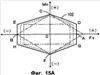Следует отметить, что на Фиг.15 точки А-Н соответствуют случаям А-Н на Фиг.11 и 12. Как показано пунктирной линией на Фиг.15А, шестиугольник 102 становится небольшим при уменьшении коэффициента µ трения дорожного покрытия. Кроме того, при возрастании величины угла поворота руля поперечная сила переднего левого и переднего правого колес, являющихся поворачивающими колесами, увеличивается, в результате чего норма продольной силы становится небольшой. Таким образом, шестиугольник 102 становится небольшим при возрастании величины угла поворота руля.