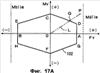 Фиг.17А и 17В – виды, иллюстрирующие порядок вычисления целевой силы Fvt торможения/движения транспортного средства после модификации и целевого момента Mvt вращения транспортного средства после модификации в случае, когда целевая сила Fvn торможения/движения транспортного средства и целевой момент Mvn вращения транспортного средства выходит за диапазон, достигаемый при управлении силами торможения/движения колес во втором варианте реализации настоящего изобретения.