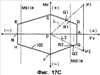 Фиг.17С – вид, иллюстрирующий работу устройства во втором варианте реализации настоящего изобретения, когда происходит смена точки, указывающей целевую силу Fvn торможения/движения транспортного средства и целевой момент Mvn вращения транспортного средства, с точки Р1 на точку Р2 при изменении целевого момента Mvn вращения транспортного средства.