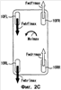 Фиг.10 – структурная схема устройства управления силой торможения/движения, примененного для четырехколесного полноприводного транспортного средства, в котором силой движения и силой регенеративного торможения, создаваемой одним электродвигателем-генератором, общим для четырех колес, управляют таким образом, чтобы они распределялись на четыре колеса согласно второму варианту реализации настоящего изобретения.