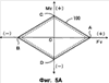Фиг.2 – вид для пояснения различных вариантов соотношения между силой торможения/движения каждого колеса и силой торможения/движения транспортного средства, а также соотношения между силой торможения/движения каждого колеса и моментом вращения транспортного средства.