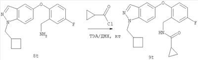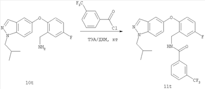 Получение 1-(3-трет-бутилизоксазол-5-ил)-3-{2-[1-(2-диметиламиноэтил)-1Н-индазол-5-илокси]-5-фторбензил}мочевины (50d)