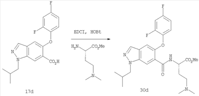 Получение 1-(3-трет-бутилизоксазол-5-ил)-3-{5-фтор-2-[1-(2-пиперазин-1-илэтил)-1Н-индазол-5-илокси]бензил)мочевины (49d)