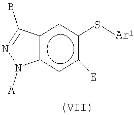 31. Соединение по п.30, выбранное из: 6-(4-фторфенилсульфанил)-3-(4-метоксибензил)-1H)индазола; [6-(4-фторфенилсульфанил)-1H-индазол-3-ил]метанола; 6-(4-фторфенилсульфанил)-3-метоксиметил-1H-индазола; 6-(4-фторфенокси)-3-метил-1H-индазола; 6-(4-хлорфенокси)-3-метил-1H-индазола; 3-метил-6-(м-толилокси)-1H-индазола; 6-(3-фторфенокси)-3-метил-1H-индазола; 6-(3-хлорфенокси)-3-метил-1H-индазола; 3-метил-6-(3-(метилтио)фенокси)-1H-индазола; 3-метил-6-(3-(метилсульфонил)фенокси)-1H-индазола; 6-(4-фтор-3-метилфенокси)-3-метил-1H-индазола; 3-этил-6-(4-фторфенилсульфанил)-1H-индазола; N-[6-(4-фторфенокси)-1H-индазол-3-ил]ацетамида; 2-[6-(4-фторфенокси)-1H-индазол-3-ил]изоиндол-1,3-диона и 3-(1,3-дигидроизоиндол-2-ил)-6-(4-фторфенокси)-1H-индазола.