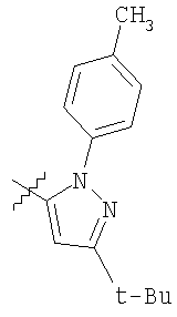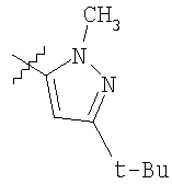 Стадия D: 2,2,2-Трихлорэтиловый эфир (5-трет-бутил-2-метил-2Н-пиразол-3-ил)карбаминовой кислоты. К охлажденному (10°С) раствору 5-трет-бутил-2-метил-2Н-пиразол-3-иламина (3,75 г, 24,5 ммоль) и NaOH (1,5 г в 20 мл воды) в этилацетате (45 мл) добавляли 2,2,2-трихлорэтилхлорформиат (7,52 г, 35,5 ммоль) в течение 5 минут. Реакционную смесь нагревали до комнатной температуры и перемешивали в течение 2 часов. Смесь разбавляли этилацетатом и слои разделяли. Органический слой промывали водой, рассолом, сушили над MgSO4 и концентрировали при пониженном давлении. Остаток разбавляли смесью этилацетат/дихлорметан и обрабатывали аминометилдиоксидом кремния (10 г) в течение 1 часа. Смесь фильтровали и фильтрат концентрировали при пониженном давлении, получая продукт.