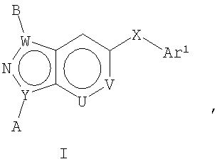 Ингибиторы р38 хорошо известны специалистам в данной области техники. Обзоры ранних ингибиторов способствовали установлению зависимости активности от структуры, важной для улучшения активности как in vitro, так и in vivo (Salituro, E.G., et al., Current Medicinal Chemistry, 6: 807-823 (1999) и Foster, M.L, et al., Drug News Perspect., 13: 488-497 (2000)). Более современные обзоры сконцентрированы на структурном многообразии новых ингибиторов, исследуемых в качестве ингибиторов р38 (Boehm, J.D. and Adams, J.L., Exp. Opin. Ther. Patents, 10: 25-37 (2000)). В этом изобретении описана новая группа замещенных 2-аза[4.3.0]бициклических гетероароматических соединений в качестве ингибиторов р38, которые полезны для лечения воспаления, остеоартрита, ревматоидного артрита, аутоиммунных заболеваний и для лечения других цитокин-опосредованных заболеваний.