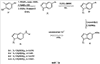 где W представляет собой N или О, когда Y представляет собой С, и W представляет собой С, когда Y представляет собой N; U представляет собой СН или N; V представляет собой С-Е или N; X представляет собой О, S, SO, SO2, NH, C=O, -C=NOR1 или CHOR1; В представляет собой Н или NH2; R1, Е и А представляют собой Н или различные алкильные, гетероалкильные, ароматические и гетероароматические заместители. Технический результат – получение новых биологически активных соединений. 6 н. и 42 з.п. ф-лы, 54 ил.