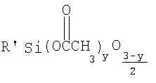 (где y=1,8÷2,0; R’ – алкил С1-С5, фенил, винил), которые составляют преимущественно 2-25 мол.% от общего числа силоксановых звеньев в блок-сополимере. В описании изобретения приведен способ получения блок-сополимера, включающего гибкий полидиорганосилоксановый и жесткий органосилсесквиоксановый блоки, последний из которых содержит реакционноспособные ацетоксигруппы. Указанный блок-сополимер способен отверждаться под действием влаги. Способ является многостадийным и включает получение промежуточного продукта – линейного полидиорганосилоксана с концевыми органодиацетоксисилильными группами, который используют для образования гибкого блока в блок-сополимере. Линейная структура последнего и его размеры в значительной степени определяют свойства целевого продукта. Однако для регулирования длины полимерного гибкого блока необходимо синтезировать дигидроксиполидиорганосилоксан со строго определенным размером цепи, что само по себе является достаточно сложной проблемой. Известен способ получения полиорганоацетоксисилоксанов фирмы Wacker-Chemie [пат. США 4680365, 1987 г., МПК C08G 77/06], согласно которому смесь, содержащую аллилацетат и полиорганогидридсилоксановый сополимер с вязкостью 250 мПа·с при 25°С, содержащий концевые триметилсилоксигруппы, метилгидридные и диметилсилоксановые звенья (по 50 мол.% каждые), подвергают взаимодействию в присутствии катализатора. В качестве катализатора применяют металлические Pd, Rh, Ro на подложке, либо комплекс ацетилацетона или фосфина, либо соединения с этими металлами. Процесс проводят при перемешивании в течение трех дней при 60°С. При этом 90 мол.% связанных с кремнием водородных атомов замещаются ацетоксигруппами с образованием полиорганоацетоксисилоксанов (см. пример 14 описания). Варьирование содержанием составляющих блок-сополимера придает продукту разные свойства. Можно значительно увеличить прочность на разрыв и растяжение прозрачных тонких пленок из органоацетоксисилоксанового блок-сополимера с концевыми ацетоксигруппами, если поддерживать их в количестве от 2 до 27 мол.%. При этом не изменяются вязкость продукта при хранении в герметичной таре в течение 3 мес и высокие адгезионные свойства. Последние дают возможность склеивать самые разные материалы: стекло, керамику, металлы, кожу, целлюлозу, бумагу, дерево, термопластики др. В блок-сополимер вводят наполнители, пигменты и иные полезные добавки. Изменяя мольные проценты его блоков и подобрав нужный разбавитель, можно получать электроизоляционные материалы. Недостатки способа: длительность проведения процесса (до трех дней), неполное замещение водородных атомов в цепи и использование недостаточно эффективного аллилацетата для введения ацетоксигрупп в полимерную цепь. Задачей опубликованного в 1998 году в Японии патента 100011543 [МПК C08G 77/14, /22, /38], выданного компании Yokohama Rubber, было получение ацилоксипроизводного ПОС. Он предназначался для применения в качестве добавки к однокомпонентным составам на основе полиуретановых смол с целью улучшения тиксотропных свойств и стабильности при хранении этих композиций. Процесс получения полиацилоксиорганосилоксанов проводился при температуре 60-120°С в две стадии по реакции взаимодействия 1) ПОС, содержащих SiH-группы с алкениловым эфиром и 2) полученного полупродукта с карбоновой кислотой. Со