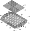Нижняя поверхность 18, как показано на фиг.3, разделена на четыре квадранта А, В, С и D. Квадранты встречаются в местах на полпути между передним и задним краями 20 и 22 и на полпути между первым и вторым боковыми краями 24 и 26. Каждый квадрант А, В, С и D отличается матрицей, по существу, параллельных пазов 60, которые выходят из пересечения соответствующего квадранта со смежными квадрантами. Затем пазы 60 проходят к внешней периферии, ограниченной краями 20-24. Таким образом, каждый паз 60 ограничивает непрерывный канал, который проходит вдоль соответствующего квадранта А, В, С и D к внешней периферии нижней поверхности 18. Некоторые из пазов 60 прерываются колонковыми отверстиями 46, 52 или 54, но ни один из пазов не прерывается гребнем или любой структурой, которая бы мешала прохождению потока воздуха вдоль паза 60. Как показано на фиг.5, каждый паз 60 ограничен двумя, по существу, планарными поверхностями, которые пересекаются под углом, составляющим девяносто градусов, и, следовательно, каждый паз 60 имеет, по существу, V-образное поперечное сечение. Помимо всего прочего, пазы 60 расположены существенно близко друг к другу (то есть на расстоянии приблизительно 0,044 дюйма (1,1 мм)), чтобы ограничивать гребни 62, по существу, имеющие форму перевернутой буквы V. Кроме того, каждый паз 60 имеет глубину, составляющую приблизительно 0,020 дюйма (0,5 мм).