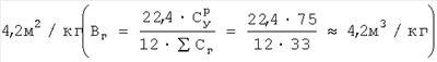 Вг – удельный выход газа, м3/кг;