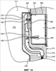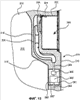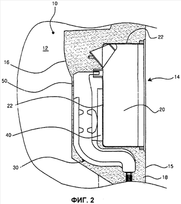 Емкость 530 установлена между корпусом 522 дозатора и облицовкой 516 двери. Емкость 530 сформирована посредством многократного изгиба трубки из синтетической пластмассы или металла. Емкость 530 выполнена в виде двух слоев, как показано на фигуре данного варианта осуществления в разрезе. Конечно, трубка, составляющая емкость 530, может быть выполнена из двух или более слоев. Количество слоев трубки, составляющей емкость 530, определяется с учетом толщины двери 514 и ей подобное.