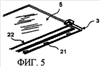 В другом варианте осуществления данного изобретения профиль 3 содержит один или несколько выступов 21, которые обеспечивают фиксацию или посадку с защелкиванием на поверхности 5 для хранения, и поверхность 5 для хранения содержит гнезда 22, в которые входят выступы и которые соответствуют по количеству и форме выступам 21. В этом варианте осуществления при вдвигании поверхности 5 для хранения в канавку 13 профиля выступы 21 входят в гнезда 22 и фиксируют поверхность 5 для хранения на профиле 3 (фиг.5).