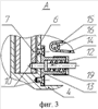 на фиг.3 показан вид одного из замковых устройств в сложенном положении стабилизатора;