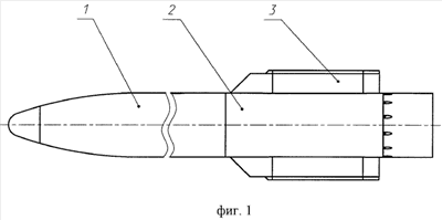 При срабатывании механизма раскрытия оперения происходит разрушение срезных элементов и выдвигаемые перья выходят из соприкосновения с резьбовыми упорами.