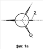 Управляемый снаряд фиг.1 состоит из блока рулевого привода 1, руля 2, маршевого двигателя 3, боевой части 4, стабилизатора 5, катушки проводной линии связи 6, трассера 7. На фиг.1а, 1б приведена схема относительного положения несущих поверхностей руля и стабилизатора в поперечной плоскости при горизонтальном 1а и вертикальном 1б положении руля.