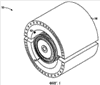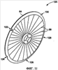 Фиг.11 иллюстрирует другую приведенную в качестве примера конфигурацию 120 вращающейся компоненты, имеющей множество выемок, расположенных на и прерывающих целостность геометрии 84 непрерывной поверхности для паровой турбины по фиг.1. В представленной сейчас и рассматриваемой конфигурации вращающаяся компонента 120 содержит множество опорных геометрических элементов или выемок, таких, как представлено ссылочными позициями 122, 124, 126, 128 и 130. Например, вращающаяся компонента 120 может содержать многоступенчатую выемку 122 наряду с полукруглыми выемками 124, 126, 128 и 130, имеющими различные глубины для прерывания целостности непрерывной круглой структуры 84.