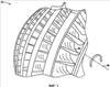 Фиг.7 иллюстрирует вращающуюся компоненту 82 с выемкой для паровой турбины по фиг.4-5. В иллюстрируемом варианте осуществления вращающаяся компонента 82 содержит множество лопаток или лопастей 56, образующих непрерывную круглую конструкцию 84 вокруг оси вращения. Более того, вращающаяся компонента 82 также содержит опорный геометрический элемент 86, прерывающий целостность непрерывной круглой конструкции 84. Примеры такого опорного геометрического элемента 86 включают впадины, такие как зазубрины, выемки, пазы, канавки и т.д.