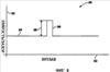 Фиг.10 является графическим представлением емкости 104, измеренной с помощью системы измерения зазора по фиг.3, от ротора по фиг.9 в соответствии с вариантами осуществления настоящих технических средств. В иллюстрируемом варианте осуществления датчик 64 генерирует сигнал, представляющий емкость, соответствующую непрерывной круглой поверхности вращающейся компоненты 100 (удаленной от многоуровневой конструкции 102), как это представлено ссылочной позицией 106. Кроме этого, датчик 64 генерирует сигналы, представляющие емкости, соответствующие уровням многоуровневой конструкции 102, как это представлено ссылочными позициями 108 и 110. Опять-таки, измеренные величины емкостей соответствуют заранее заданным глубинам 112 и 114 опорного геометрического элемента 102. Разность в измеренных емкостях, соответствующая уровням многоуровневой конструкции 102, и поверхность вращающейся компоненты 100 используются для определения зазора между стационарной и вращающейся компонентами 62 и 100. В иллюстрируемом варианте осуществления множество разностей в измеренных емкостях между поверхностью вращающейся компоненты 100 и множество уровней многоуровневой конструкции 102 получают для каждого поворота вращающейся компоненты 100. Более того, такие измерения обрабатывают, и соответствующие просмотровые таблицы могут быть использованы для определения зазора между стационарной и вращающейся компонентами 62 и 100 на основании разностей измерения и заранее заданных глубин 112 и 114 опорного геометрического элемента 102. Такое множество измерений разности, полученных для каждого поворота вращающейся компоненты, предпочтительно, по существу, увеличивает быстродействие системы измерения зазора.