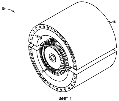 Как обсуждено подробно ниже, варианты осуществления настоящих технических средств функционируют для обеспечения точного измерения зазора между двумя объектами в различных системах, таких как паровая турбина, генератор, газотурбинный двигатель (например, газотурбинный двигатель самолета), машина, имеющая вращающиеся компоненты, и т.д. Обращаясь к чертежам, можно видеть, что фиг.1 иллюстрирует паровую турбину 10, имеющую систему 12 измерения зазора для измерения зазора между двумя объектами в паровой турбине 10. В иллюстрируемом варианте осуществления система 12 измерения зазора имеет конфигурацию для измерения зазора между вращающейся компонентой 14 и стационарной компонентой 16 в паровой турбине 10, которая будет описана подробно ниже.