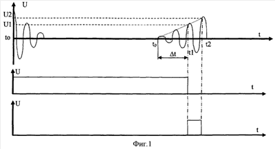 Предлагаемый способ был использован в ультразвуковом уровнемере светлых нефтепродуктов. U1 равнялось 1 вольт, U2-2 вольта, длина волны ультразвукового импульса – 4 мм, измеренное осциллографом GDS 820G время t1 равнялось 1215 мкс, t2 – 1221 мкс, tp-u – 1208 мкс, расчетное время распространения составило: