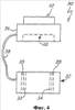Фиг.4 – это схематичное представление комплекта, который может быть применен к ненагреваемым датчикам давления высокой степени чистоты, чтобы применять на практике варианты осуществления настоящего изобретения. Комплект 30, в общем, включает в себя два модуля. Во-первых, комплект 30 включает в себя обогреваемый узел 32, который приспособлен для того, чтобы соединяться с узлом 14 чувствительного элемента. В варианте осуществления, показанном на фиг.4, обогреваемый узел 32 включает в себя отверстие 34, имеющее такой размер, чтобы в него мог проходить внешний диаметр узла 14 чувствительного элемента. Обогреваемый узел 32 включает в себя один или более нагревательных элементов 35, которые могут иметь любую подходящую форму, в том числе катушки, картриджей, вытравленных следов и т.д. Могут быть использованы прижимание и/или другие способы прикрепления обогреваемого узла 32 к узлу 14 чувствительного элемента. Узел 36 соединителя электрически соединен с обогреваемым узлом 32 посредством электрического соединения 38. Узел 36 соединителя предпочтительно включает в себя схему для того, чтобы вычислять температуру обогреваемого узла 32 с помощью чувствительного к температуре элемента 33, размещенного в обогреваемой части 32. Дополнительно, узел 36 соединителя включает в себя известную схему управления нагревателем (не показана) для того, чтобы выборочно подавать питание на нагревательные элементы 35 в обогреваемом узле 32 так, чтобы поддерживать повышенную температуру обогреваемого узла 32. Электрическое соединение 38 между узлом 36 соединителя и обогреваемым узлом 32 может включать в себя любое подходящее число проводников. Например, в вариантах осуществления, где обогреваемый узел 32 включает в себя электрический нагревательный элемент и чувствительный к температуре элемент, соединение 38 включает в себя подходящие проводники для всех нагревательных элементов и/или чувствительных элементов в узле 32.