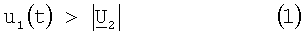 При этом значение отношения второго напряжения постоянного тока являющегося делимым, к первому напряжению постоянного тока являющегося делителем, на своем выходе компаратор кодирует в длительности t прямоугольных импульсов напряжения uвых постоянной амплитуды, последовательность которых появляется, когда имеет место превышение вызывающего срабатывание компаратора переменного рабочего мгновенного напряжения u1(t) над тормозным напряжением постоянного тока вызывающим его несрабатывание, т.е. при условии