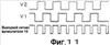 фиг.11 показывает форму сигнала, являющуюся результатом преобразования меандра, созданного на основании преобразованного напряжения V1, показанного на фиг.10, и форму сигнала, формируемую, когда расчет EXOR выполняется на основании формы сигнала являющейся результатом преобразования меандра, созданного на основании напряжения V2.