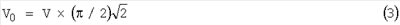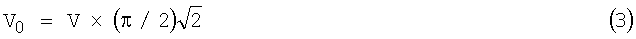 К тому же, аналого-цифровой преобразователь 25 преобразует выпрямленное напряжение V2, подаваемое с двухполупериодного выпрямителя 17, в цифровой сигнал и подает цифровой сигнал в вычислитель 26 среднеквадратического значения. Вычислитель 26 среднеквадратического значения рассчитывает, согласно равенству (3), приведенному ниже, среднеквадратическое значение V0 напряжения V2 на основе сигнала, подаваемого из аналого-цифрового преобразователя 25: